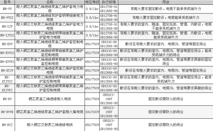 本產(chǎn)品適用于固定敷設(shè)需防火的場(chǎng)合。如高層建筑、地下鐵道、核電站、發(fā)電廠、機(jī)場(chǎng)、油田、化工廠及重要的工礦企業(yè)等與消防救生有關(guān)場(chǎng)合,同時(shí)又是應(yīng)急電源、消防泵、電梯、通訊信號(hào)系統(tǒng)必備電纜。