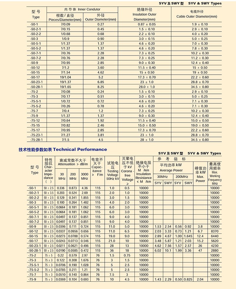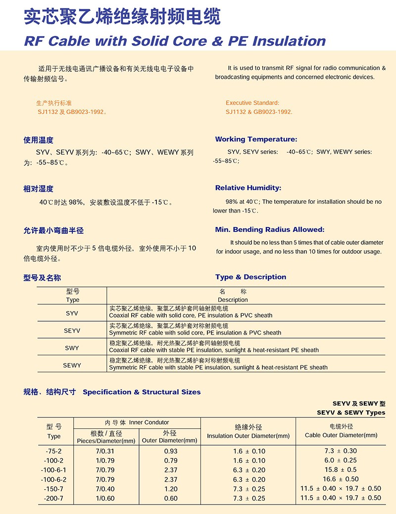 實芯聚乙烯J緣射頻電纜